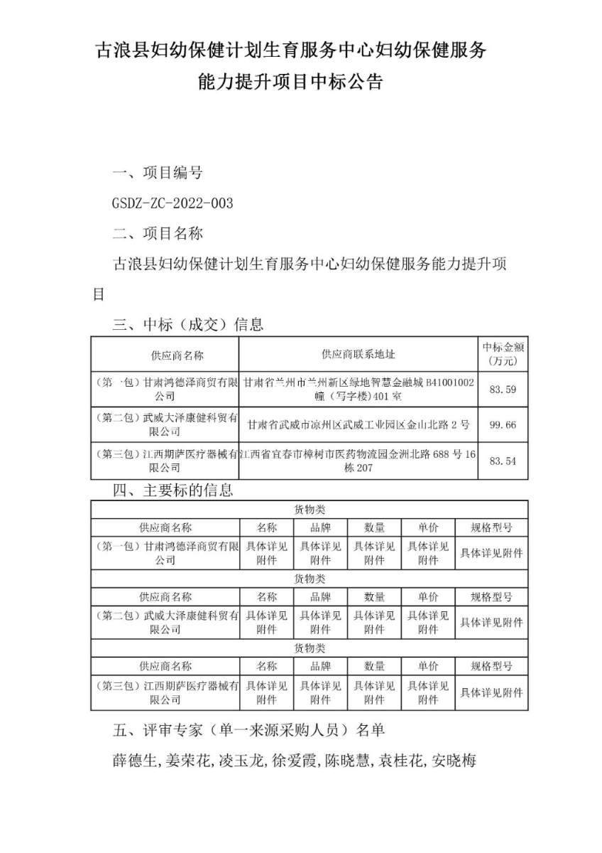古浪縣婦幼保健計劃生育服務中心婦幼保健服務能力提升項目中標公告